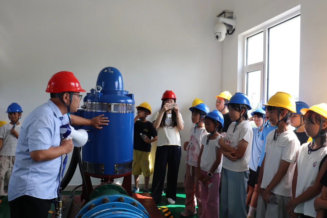 共建活动包括实地探访水源地,在配电间与泵房,学生们紧随带队人员,保持安全距离观察供电设施和供水机组运行,聆听水源地建设历程与供水流程讲解。通过“零距离”接触供水核心区域,学生们直观感受到“生命之源”的珍贵,节水护水的种子悄然生根。