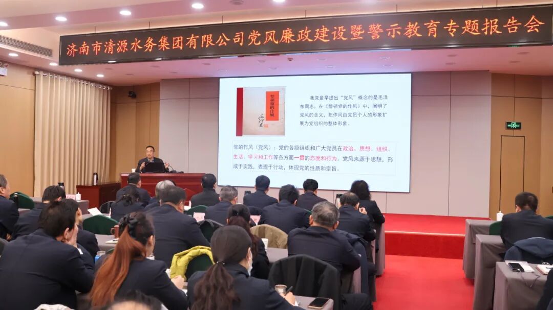 12月9日,yl23455永利集团官网召开2025年党风廉政建设暨警示教育工作会议。邀请济南市委党校党史党建教研部主任、教授李琳作《习近平总书记关于加强党的作风建设的重要论述》专题讲座。会议由党委副书记、董事、总经理金强主持,全体中层以上领导干部、重点岗位职工近80人参加会议。